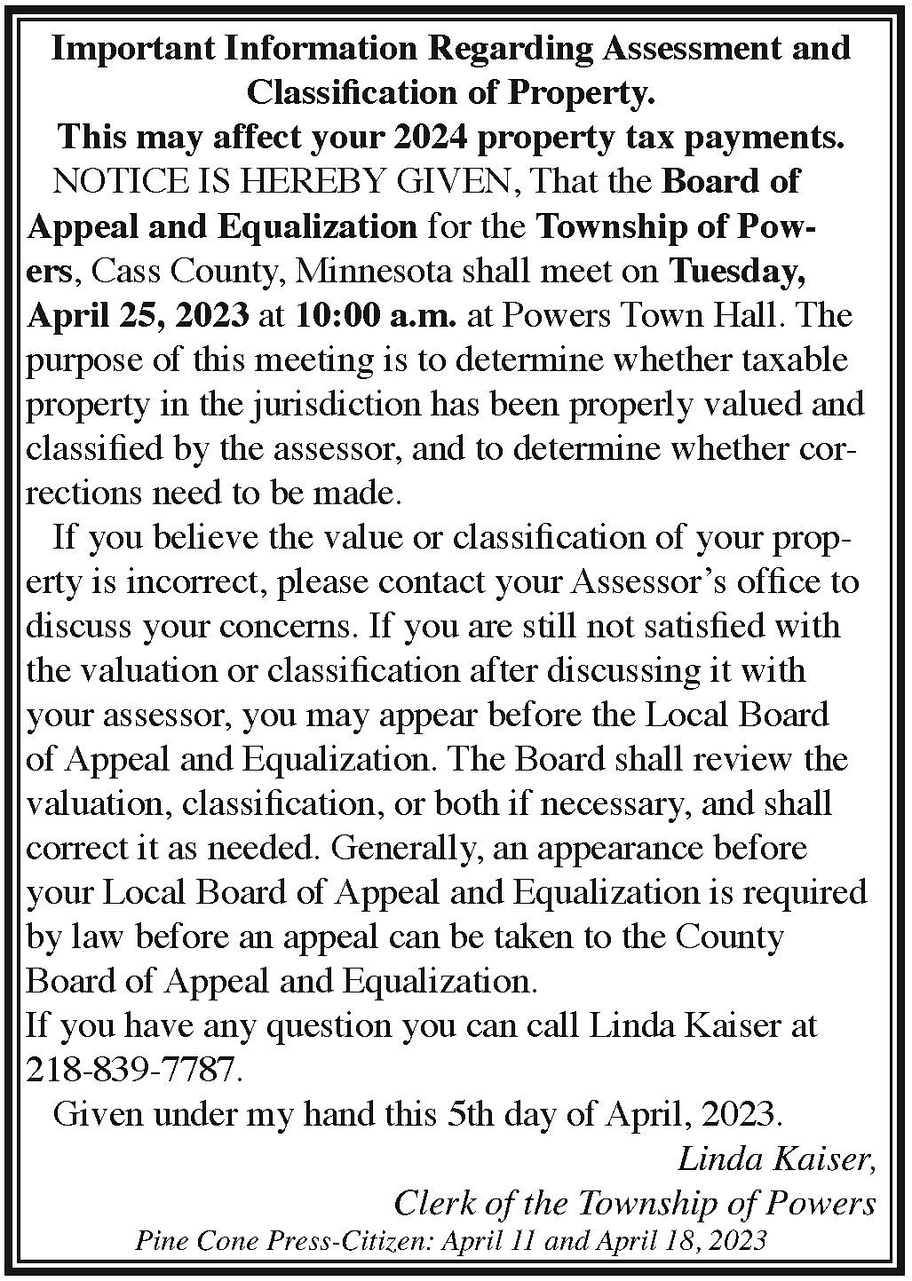 Powers Township Assessment '23