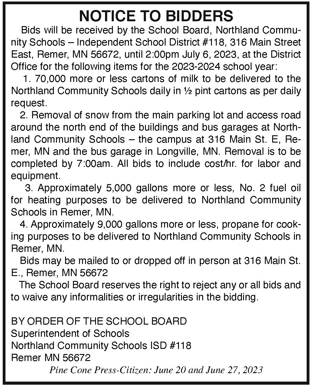 ISD #118 Request Bids '23