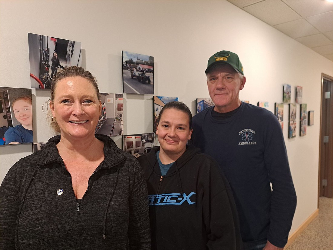 The Remer Area Ambulance Service recognized three milestone service years at their January meeting. Receiving pins were: Jenn Welk with 21 years, Lyndsay Hausken with 10 years, and David Anderson with 20 years. Photo submitted.