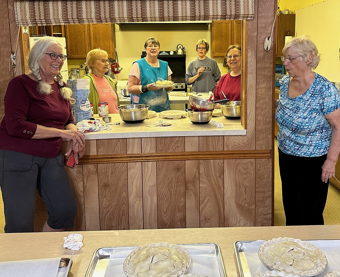 Longville’s Young at Heart Club held another successful bake sale on May 25. The money raised is used to support the maintenance of the club building. The next sale will be held on July 4. The ladies pictured are volunteers who made the pies and baked the cinnamon rolls and turnovers. Photo submitted.