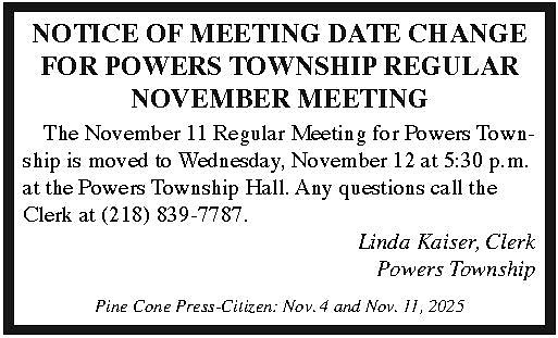 Powers Twp Meeting Change 2025