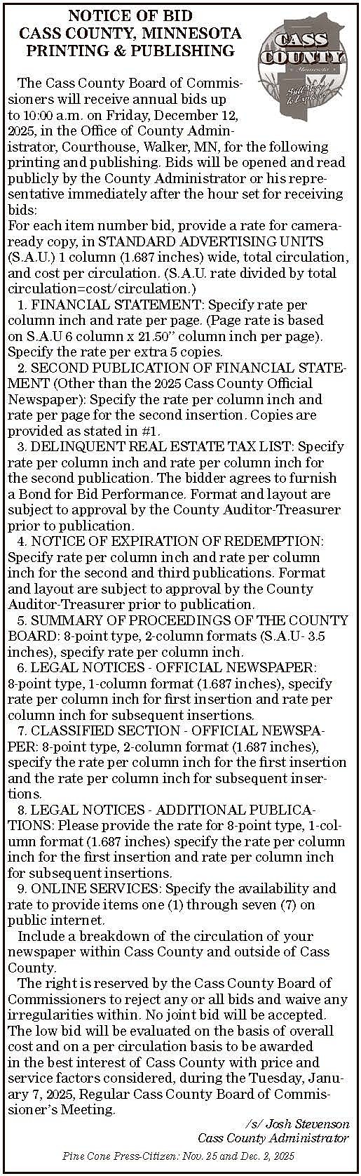 Cass Co - Bids publishing 11-25-25