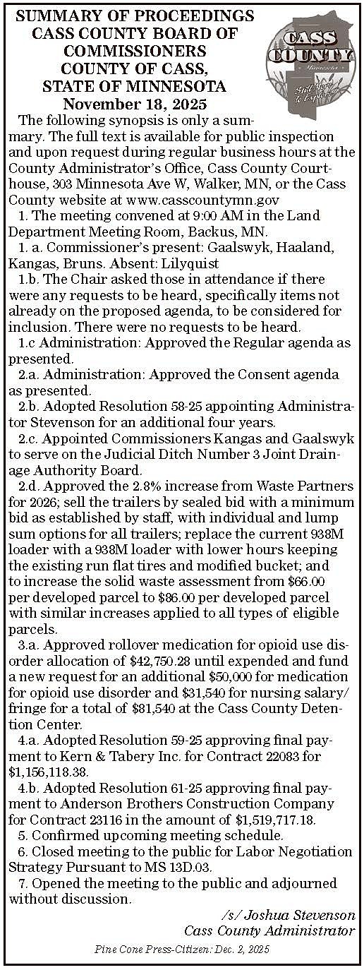Cass Co - Summary of Proceedings 12-2-25