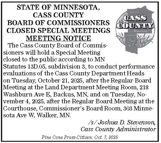 Cass Co - Special Closed Meeting Notice 10-7-25
