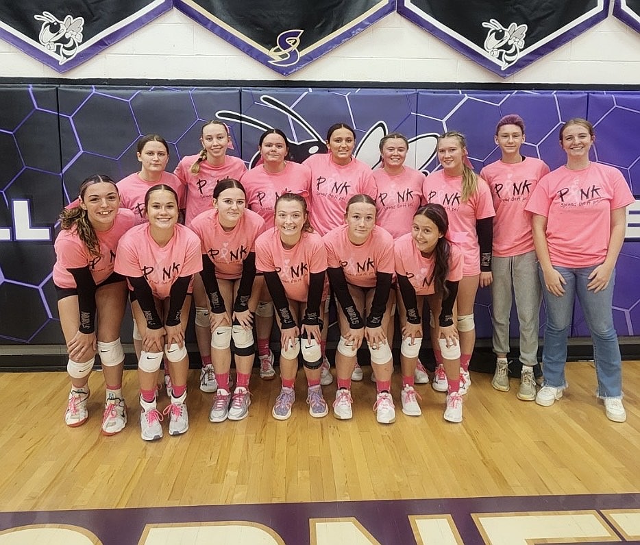 HCN Storm raised a little over $800 Tuesday, Sept. 30 for the American Breast Cancer Foundation during their home game against Mount Iron-Buhl. The ladies auctioned off gift baskets and held a split the pot duck toss. Photo submitted.