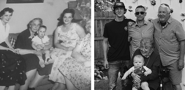 In 1955, a young mother named Marcie Swenson posed for a family photo that would come to represent the roots of five generations. In that picture, Marcie is the “Momma”, sitting on the edge of the sofa. Her little one, Jeff, is being held by Great-Great Grandma Stellar. Marcie beaming with love and determination that defined her life. Eighteen years later, in 1973, Marcie, her husband Arlen Swenson and five more children, made a bold decision that would shape their family’s story for decades to come. They moved their family from St. Paul to Hackensack, Minnesota and became new owners of Green Roof Lodge on Woman Lake. What began as a leap of faith soon became a legacy, as now her children, grandchildren, and great-great grandchildren have enjoyed this quiet strength of small-town life. Now, seventeen years after that 1955 photograph, the circle is complete. Marcie, once the young mother in the picture, is now the great-great grandmother holding little Boden- the newest branch on a deeply rooted family tree. Also pictured is Jeff Swenson, the little one in 1955, now the great grandfather, and his son Shaun and Bryson Swenson, little Boden’s father. From young mother to great-great grandmother, the love that started with Marcie continues to ripple through five generations- a living reminder that family, faith, and courage can carry a legacy far beyond a lifetime.