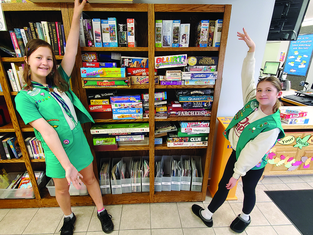 The troop got the word out for donations. Christensen and library staff were delighted with the public response. “We got a flood of new and gently used board games, card games, trivia and more for a solid two weeks after the girls put up their social media post,” she said. The Girl Scouts spent weeks sorting through the donations and creating labels for each game.