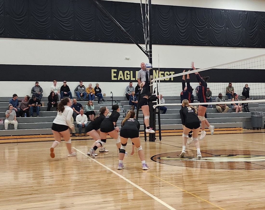 Stat leaders for the evening were: Charity Berg with nine kills, 18 digs and three ace serves; Ashlyn Schwarz with eight kills and six blocks; Nora Wake with seven kills, two blocks and ten digs; Maddie Barnes with 33 digs and one ace serve and Taylor Washburn with two ace serves and 22 set assists.