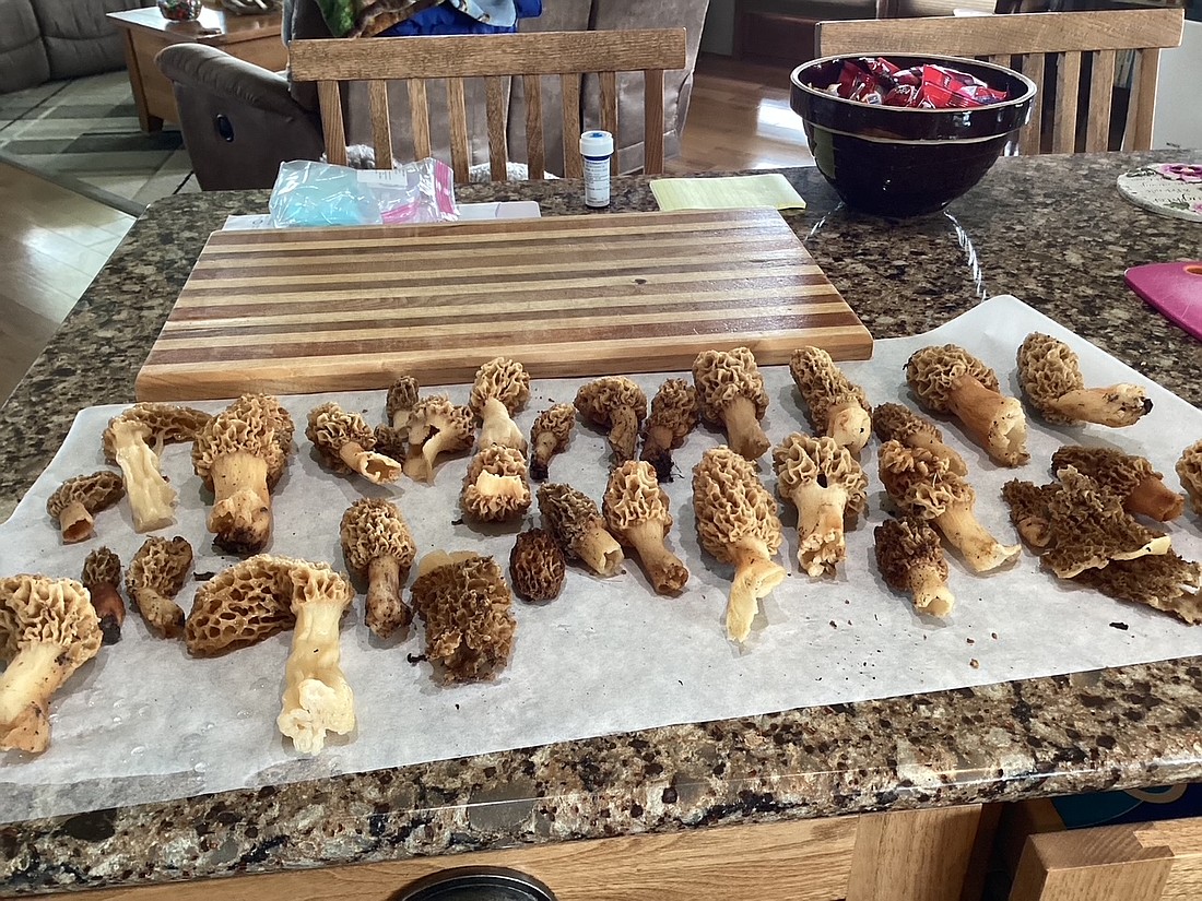 Spotting morels is difficult as they are the same color as the leaves that fell from surrounding trees last fall. When they are growing up through this layer of leaves, they are well camouflaged. If a person is lucky enough to find an area in the timber that has burned the leaves and brush off, hunting can be much easier. Frequently, they will grow on or near trails used by the deer and turkeys. A person must be able to find these before the wildlife spots them or they will be gone. I think the native animals like mushrooms as much as we do.