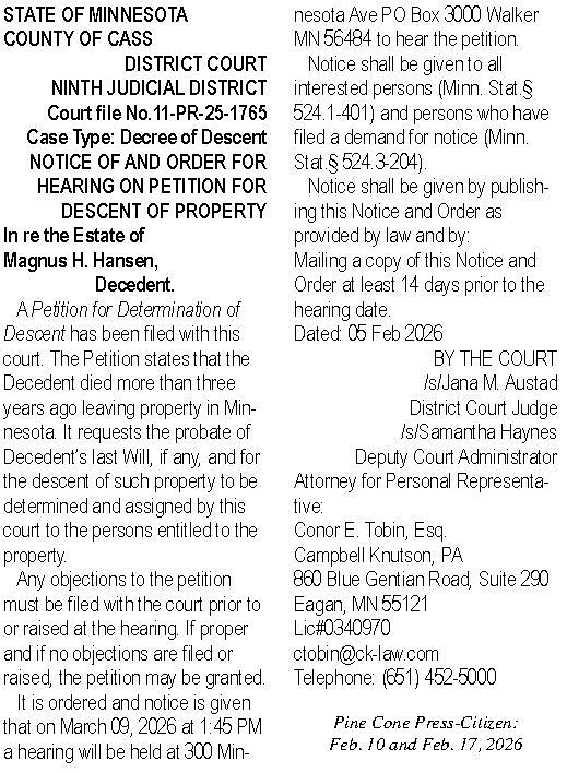 Legal - Magnus Hansen Estate