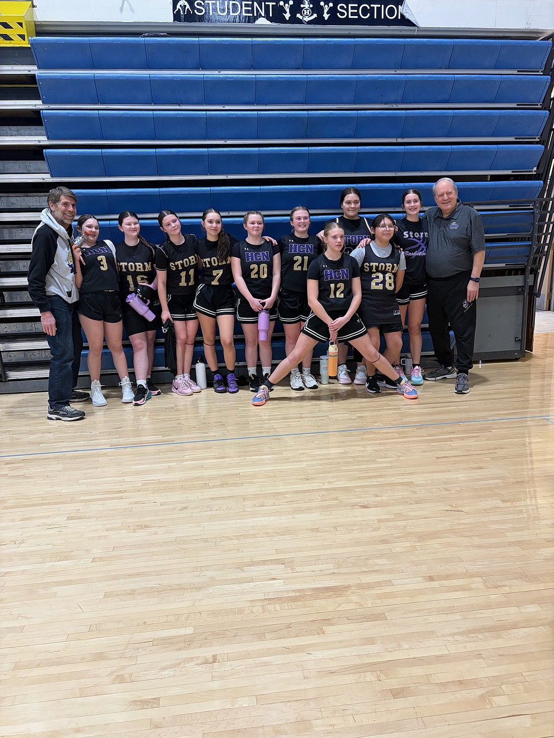 Undefeated and on a roll, the Northland–Hill City Storm Junior High girls basketball team captured first place at the Hibbing Junior High Tournament on Saturday, Feb. 7. Competing against eight teams, the Storm earned their second tournament championship of the season and improved their record to 17–0. Photo submitted.