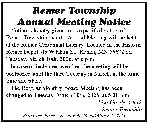 Remer Twp. Annual Meeting notice