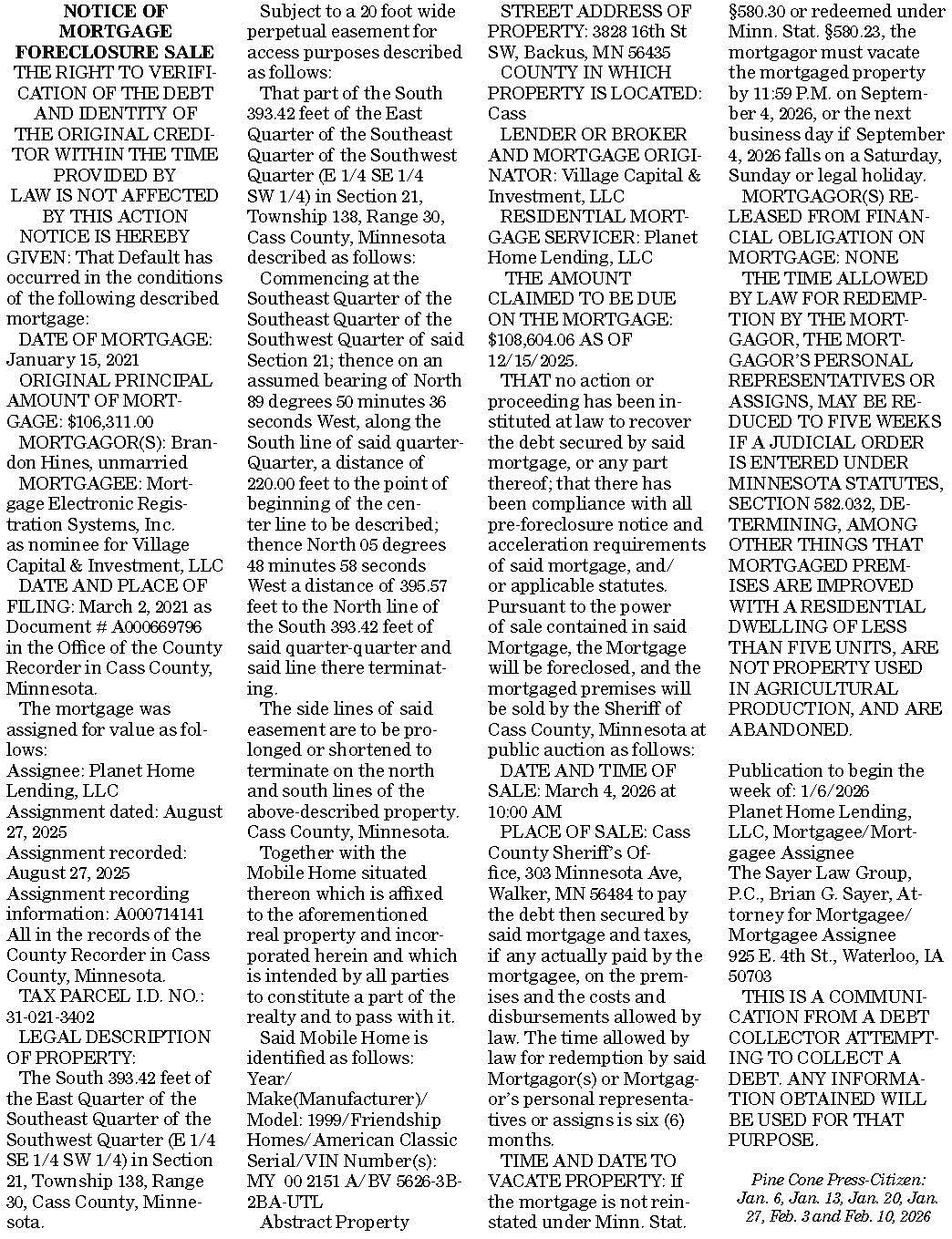 Pine Cone Press-Citizen 2-3-26