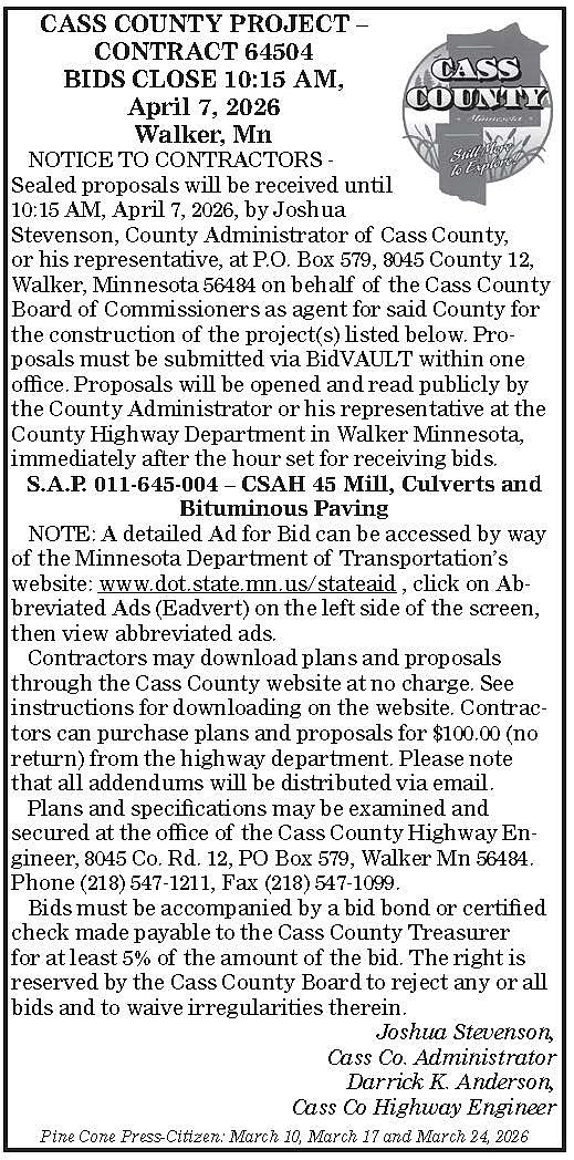 Cass Co - Bids for contract 64504 3-10-26